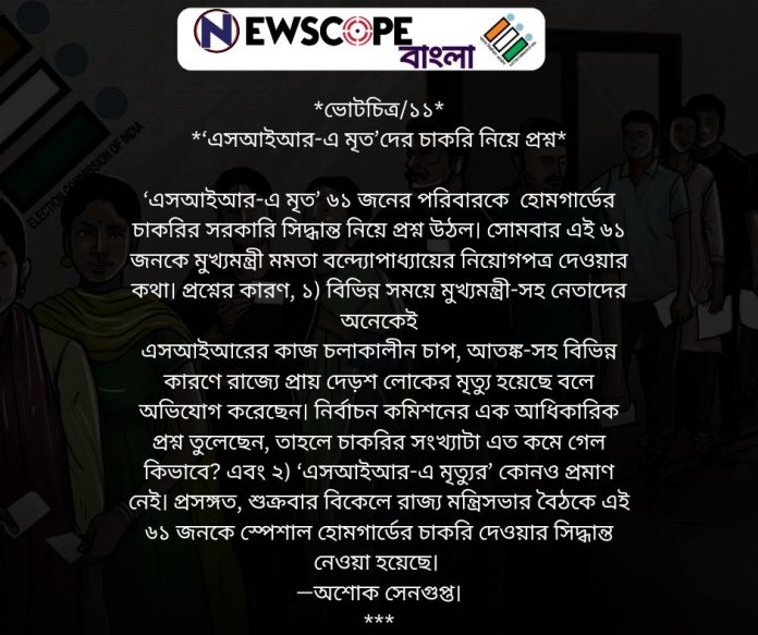 এসআইআর-এ মৃত’দের চাকরি নিয়ে প্রশ্ন