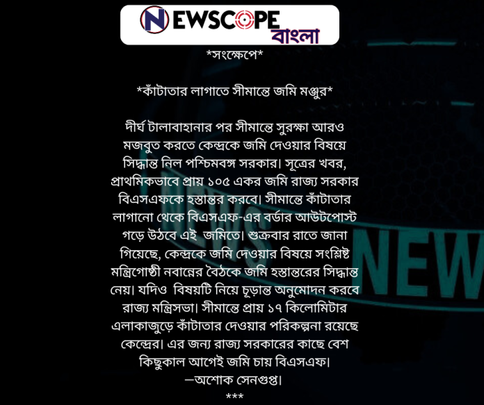 কাঁটাতার লাগাতে সীমান্তে জমি মঞ্জুর