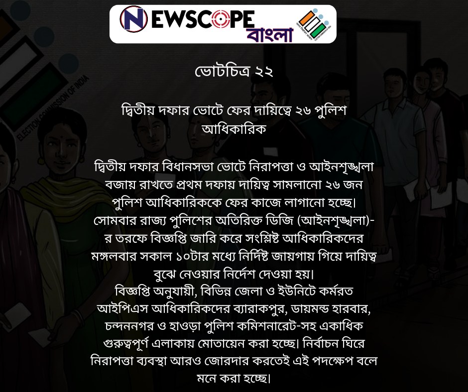দ্বিতীয় দফার ভোটে ফের দায়িত্বে ২৬ পুলিশ আধিকারিক