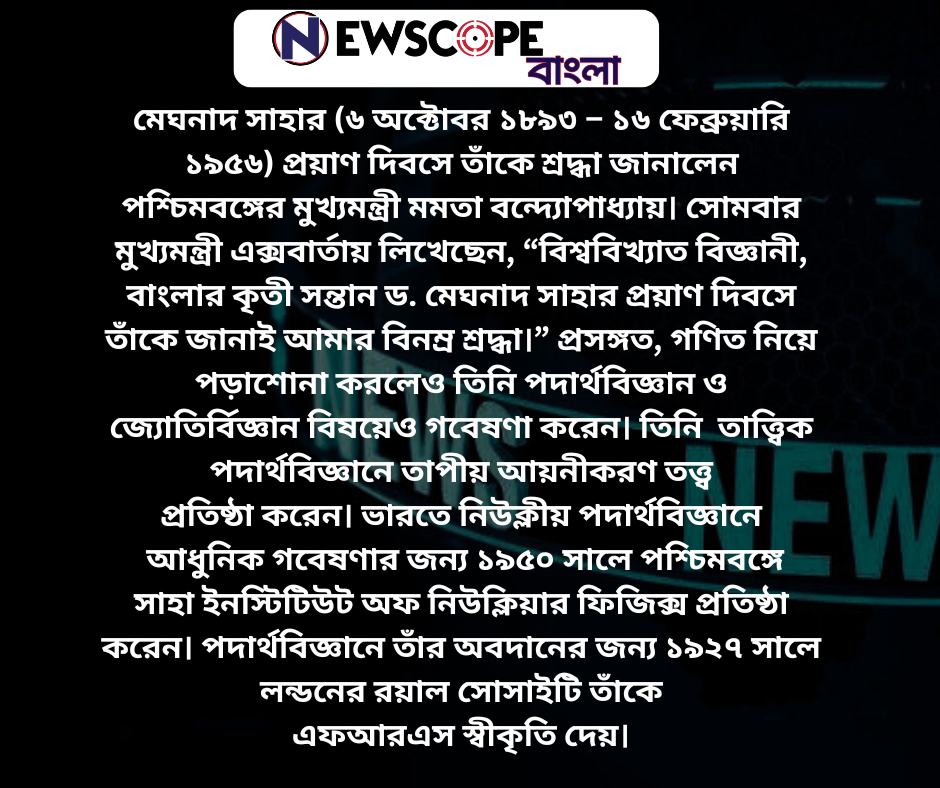 মেঘনাদ সাহাকে শ্রদ্ধা মমতা বন্দ্যোপাধ্যায়ের