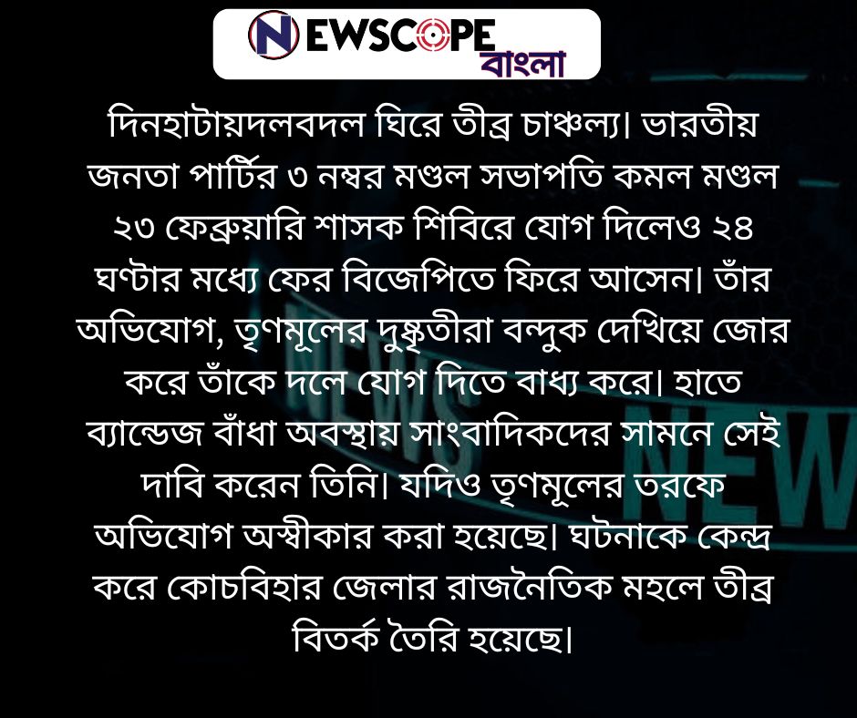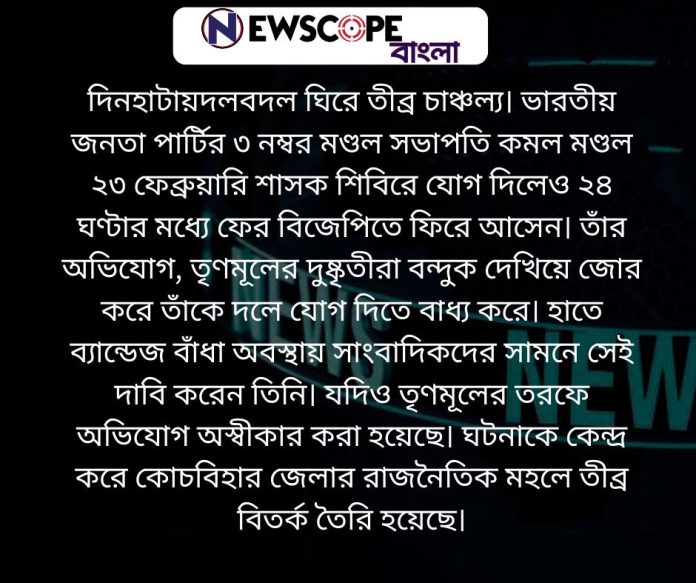 ২৪ ঘণ্টায় দলবদল, বন্দুক দেখিয়ে জোর করে যোগদানের অভিযোগ বিজেপি নেতার