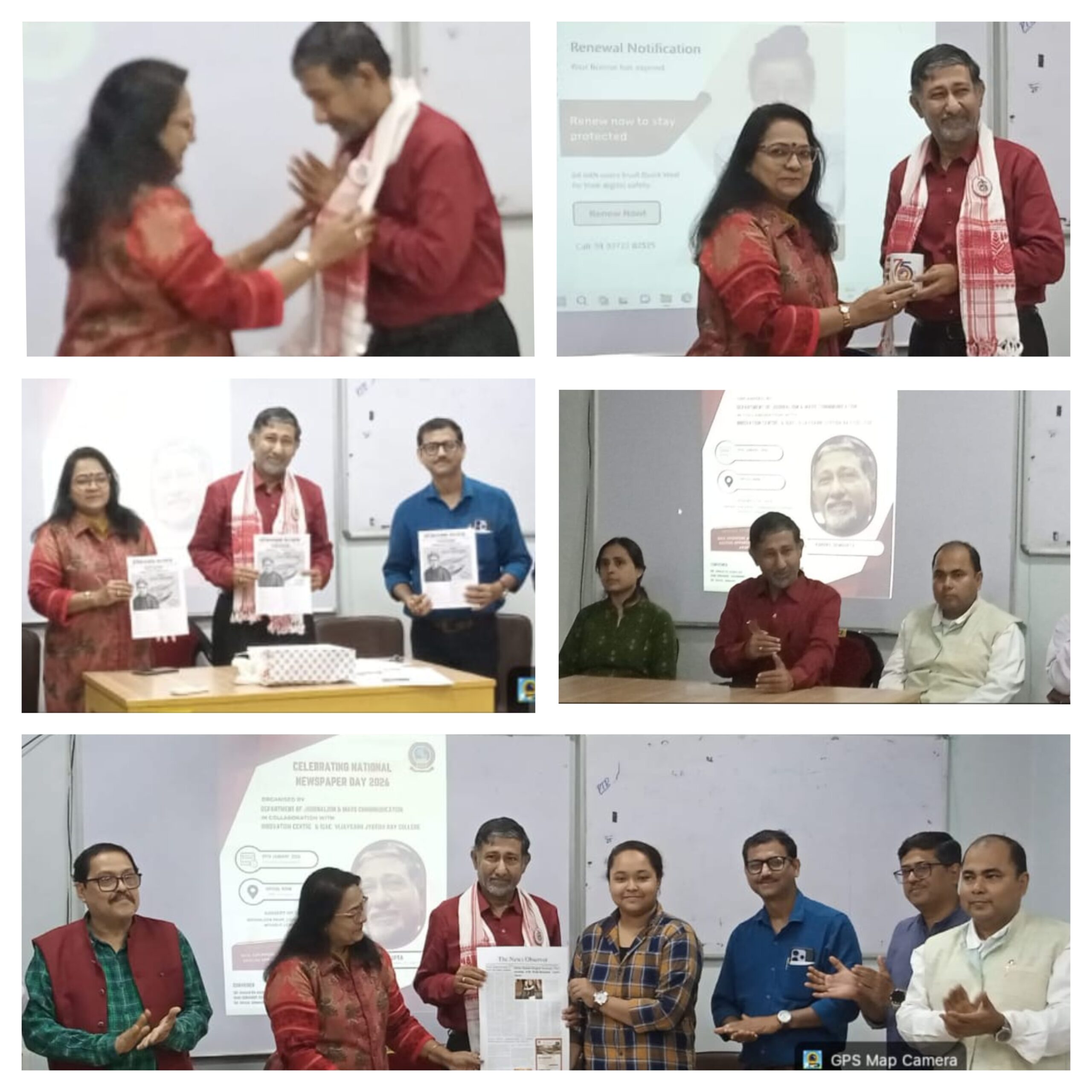 “গ্রহণ করেছ যত ঋণী তত করেছ আমায়।” — রবীন্দ্রনাথ ঠাকুর।বিজয়গড় জ্যোতিষ রায় কলেজে সাংবাদিকতা ও গণজ্ঞাপন বিভাগের তিন দিনের আয়োজনে ’২৬-এর ২৯ জানুয়ারিসমাপ্তি অনুষ্ঠানের কিছু খণ্ডচিত্র। এদিন ছিল জাতীয় সংবাদপত্র দিবস। ছবিতে কলেজের অধ্যক্ষ ডঃ রাজ্যশ্রী নিয়োগী ছাড়াও আছেন ৪ বিভাগীয় প্রধান ডঃ অর্ণব ব্যানার্জী (সাংবাদিকতা), অমলেন্দু মজুমদার (এডুকেশন), প্রসেনজিৎ দাস (মাইক্রোবায়োলজি), অভিজিৎ দাস (অর্থনীতি)। অধ্যাপিকা ডঃ বকুল শ্রীমানী, সুনন্দিত চৌধুরী, আমন্ত্রিত অতিথি সাংবাদিক/লেখক অশোক সেনগুপ্ত।