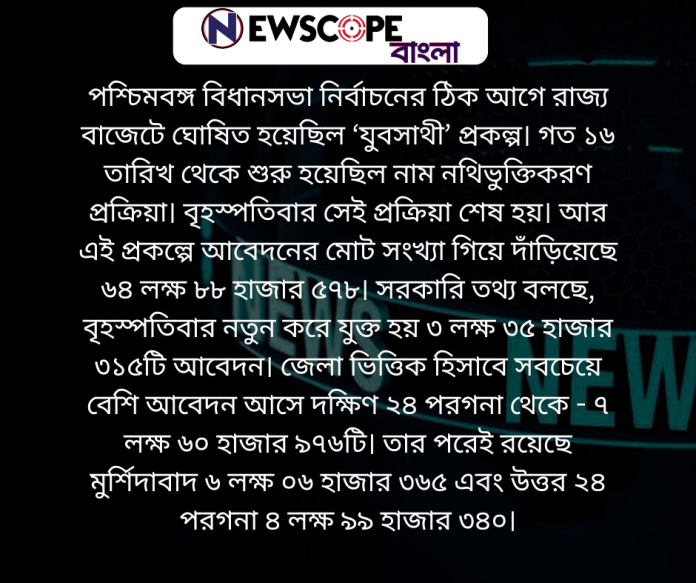 শেষ হল ‘যুবসাথী’-তে আবেদন, ১১ দিনে প্রায় ৬৫ লক্ষ